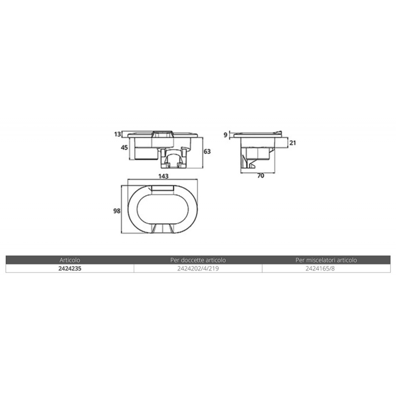 Contenitore in ASA bianco resistente ai raggi UV per doccette e rubinetti miscelatori.