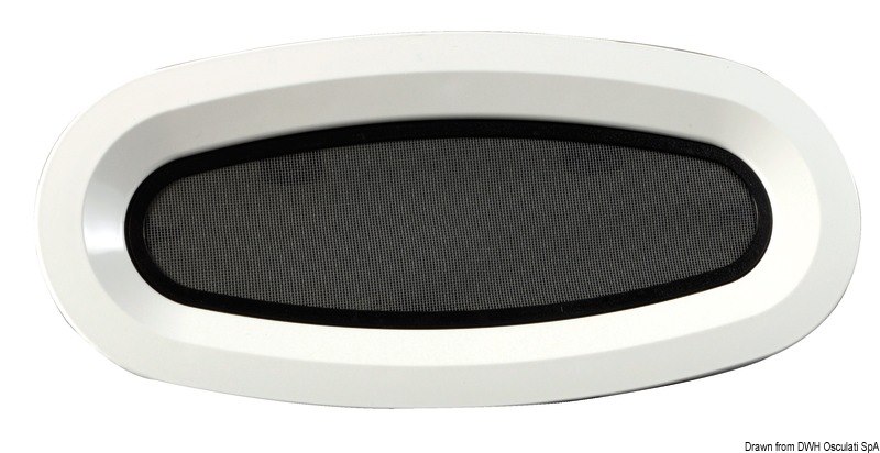 Forma: Ellittica Esterno mm: 418x200 Taglio mm: 395x174 Colore: Bianco Sigla Bomar: 619