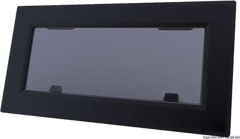 Una gamma di oblò nata per soddisfare le esigenze di design e modernità. Cerniere con frizione integrata e leve di chiusura a scatto ad azione rapida e sicura. Il telaio, in alluminio anodizzato e verniciato a polvere in nero opaco, è adatto all'installazione su vetroresina, plexiglass. L'installazione è semplice e rapida e può essere effettuata da un solo operatore, la cornice esterna filettata si accoppia alla controflangia interna mediante viti passati.