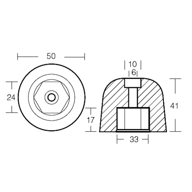 Ogiva esagonalein zinco per bow thrust Vetus Serie KGF220 (rif. or. BP1210)