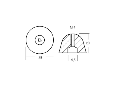 Ogiva in zinco per bow thrust Volvo Penta BP500/600, SP600(rif. or. 4110098)