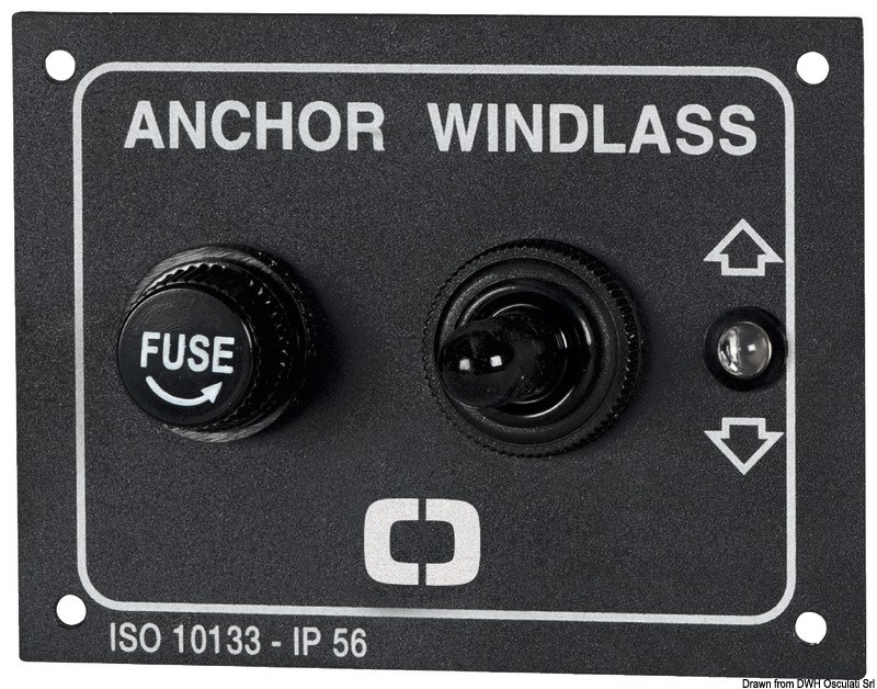 Comprende un interruttore ricoperto di gomma a tenuta stagna “Up Down” con ritorno a molla, un portafusibile di sicurezza, due spie luminose a LED di controllo.