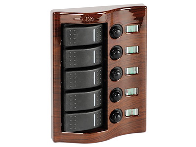 Pannello 5 interruttori mogano