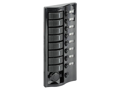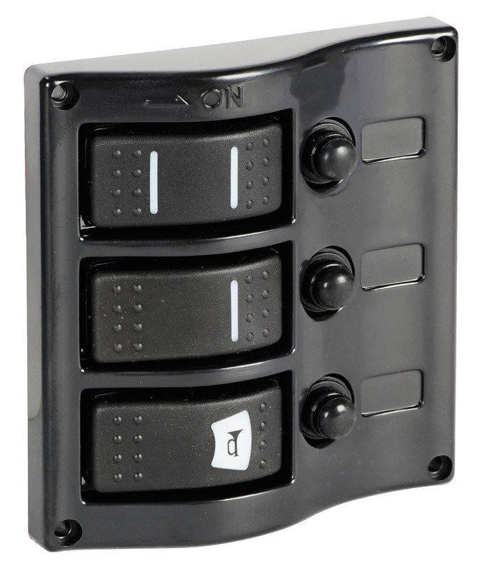 Composti da interruttori modello 14.196.01, completi di LED che si illumina a funzione attivata, e di fusibili automatici termici riarmabili.