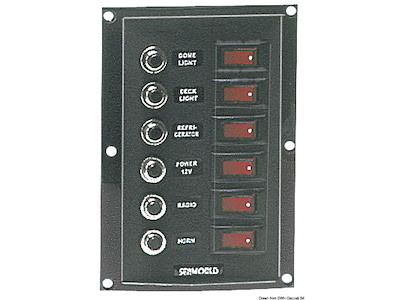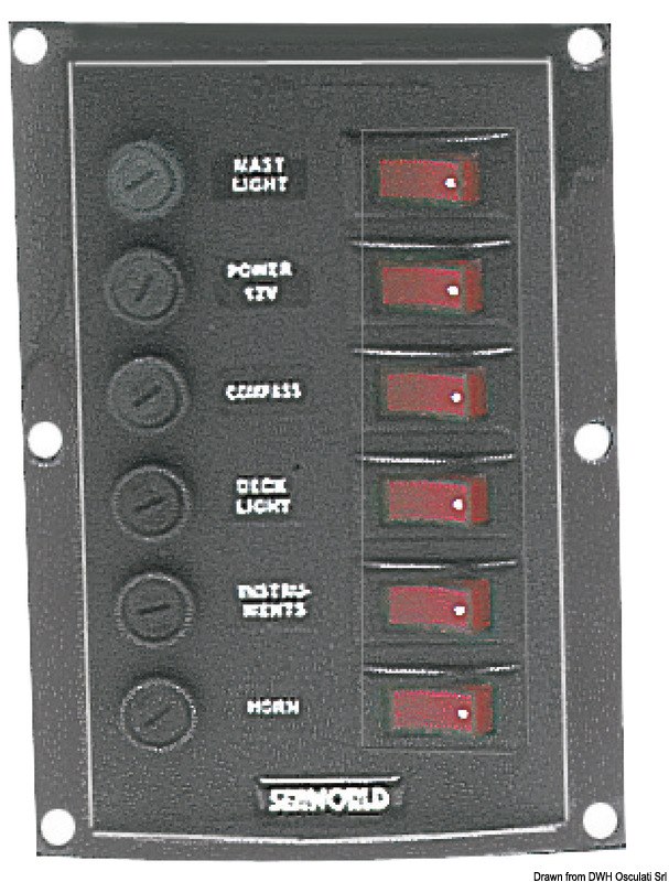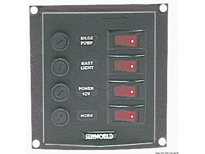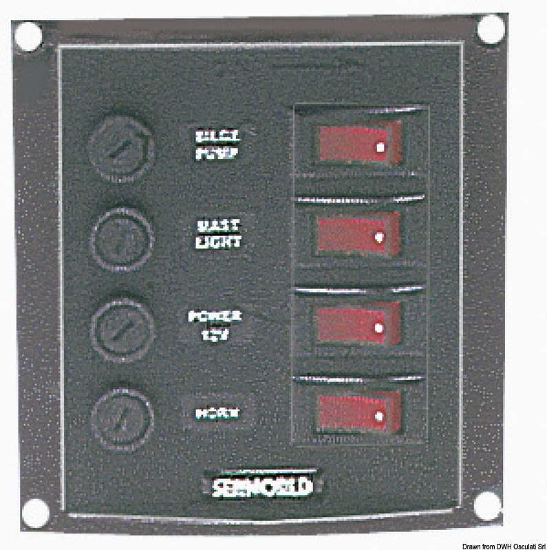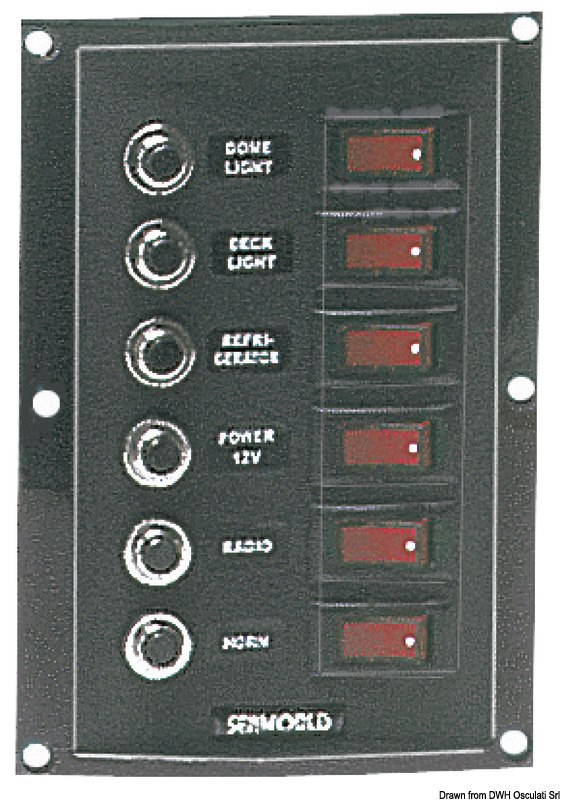 Con interruttore a bascula luminosi. Ignifugo, stampato a iniezione di colore nero.