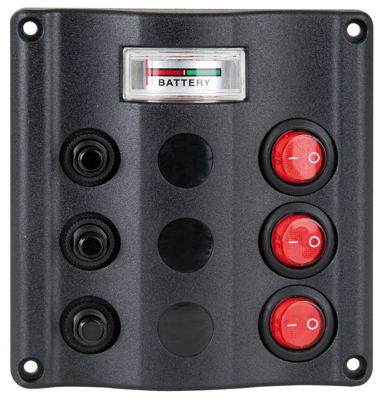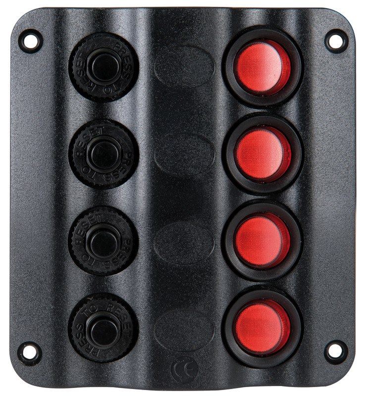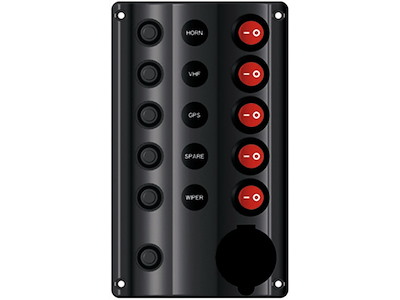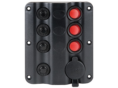 Fabbricati in plastica nera, sono completi di interruttori a bascula e fusibili automatici termici riarmabili. Completi di adesivi per identificare le varie utenze.