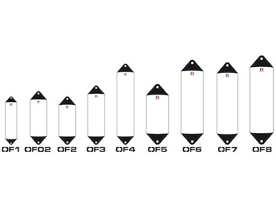 Fabbricati in morbido PVC di alta qualità. Corpo bianco con testa blu . Provvisti di valvola di gonfiaggio/sgonfiaggio. I modelli OF4/OF6 possono essere anche usati come rulli di alaggio per scafi. Pressione massima 0,15 bar.