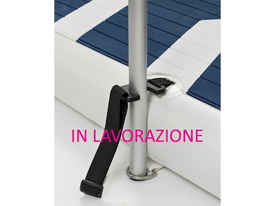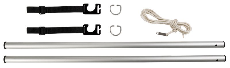 E’ realizzato con due aste di diametro 30 mm in alluminio e cima nautica da 6 mm con corsone di tensionamento.