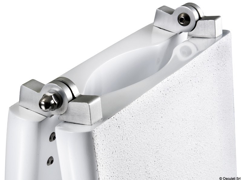 Si può montare con un solo perno e la passerella può brandeggiare, oppure con due perni che consentono il solo movimento verticale (entrambi i perni sono inclusi).