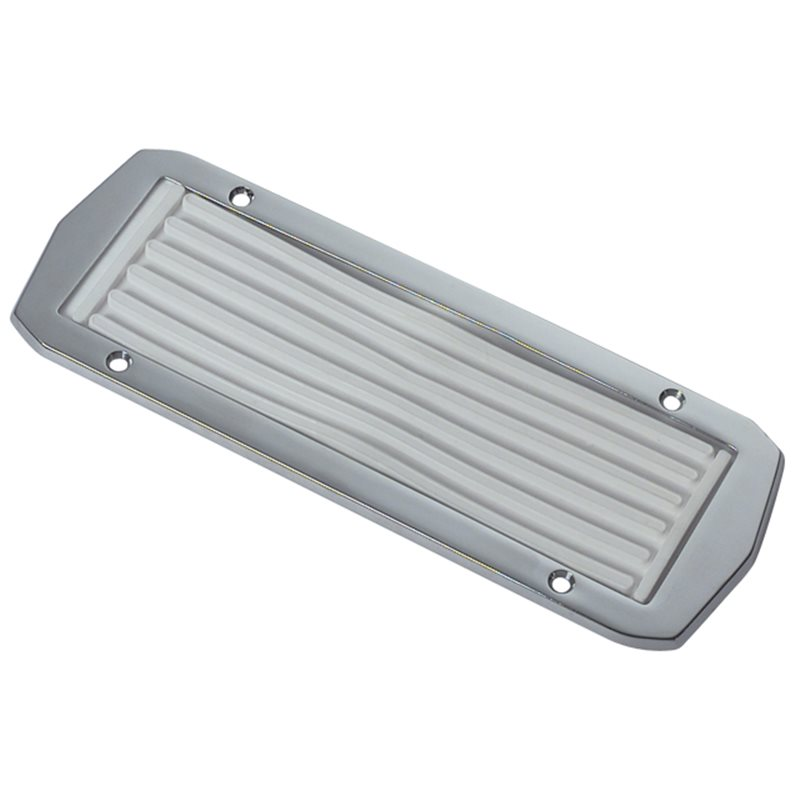Pedana poggia piedi cornice in ottone cromato e gomma antiscivolo bianca. Dim. mm. 230x80.