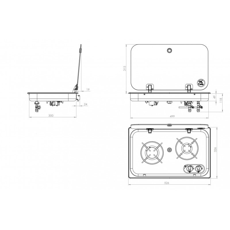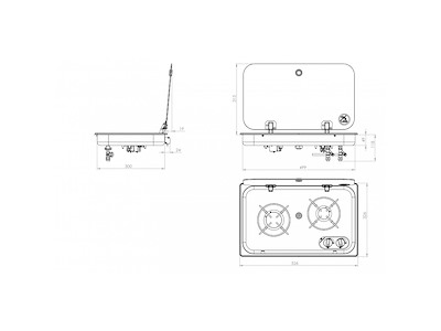 Piano cottura con coperchio a gas con accensione manuale, in acciaio inox lucidato a specchio, con coperchio in vetro. Montaggio ad incasso. Con termocoppia di sicurezza. Con foro per ferma pentole. Certificati CE. Fuochi: 2 Portata: 2,8 KW Dimensioni: 530X326 MM Incasso: 505X305X119 MM Peso: 5,5 KG