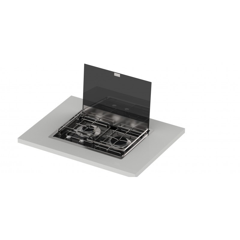 Piano cottura in vetro temperato, a gas butano/propano, con termocoppia di sicurezza. Ugello di collegamento cucina / impianto a gas da acquistare a parte.