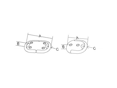 Piastra ovale in acciaio inox AISI 316. Anelli abbattibili con frizione antirollio. Carico di rottura 600 kg.