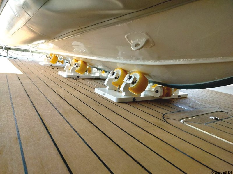 Dotate di rulli in polietilene da 13 cm si autoregolano, con un escursione da 0-24°, adattandosi alla forma dello scafo; la ruota centrale da 8 cm protegge la chiglia.