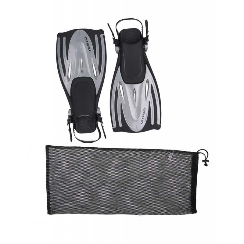 Pinne a strappo leggere e di medie dimensioni, ideale per i viaggi, l'uso in piscina e lo snorkeling. Di facile regolazione possono essere indossate con stivaletti, calzari o a piedi nudi. Un unico set di pinne per ogni occasione. Viene fornito con una borsa a rete ideale per riporre l'attrezzatura per lo snorkeling.CARATTERISTICHE• Tallone regolabile• Pinna ampia e flessibile