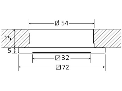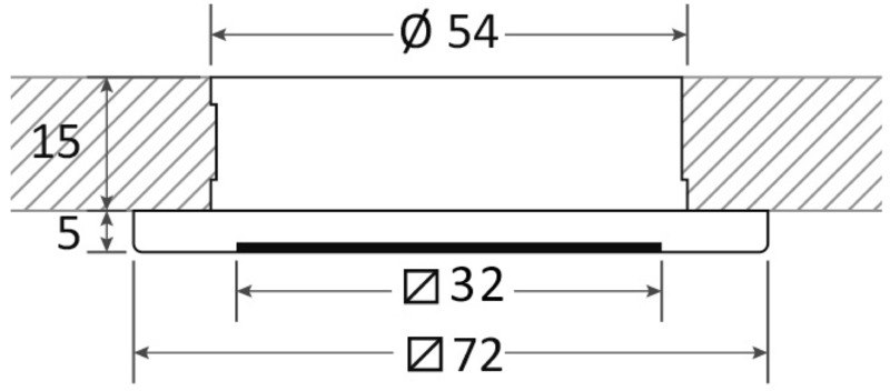 Carcassa in policarbonato completa di ghiera. Lente satinata. Un solo LED centrale. Fissaggio con viti.