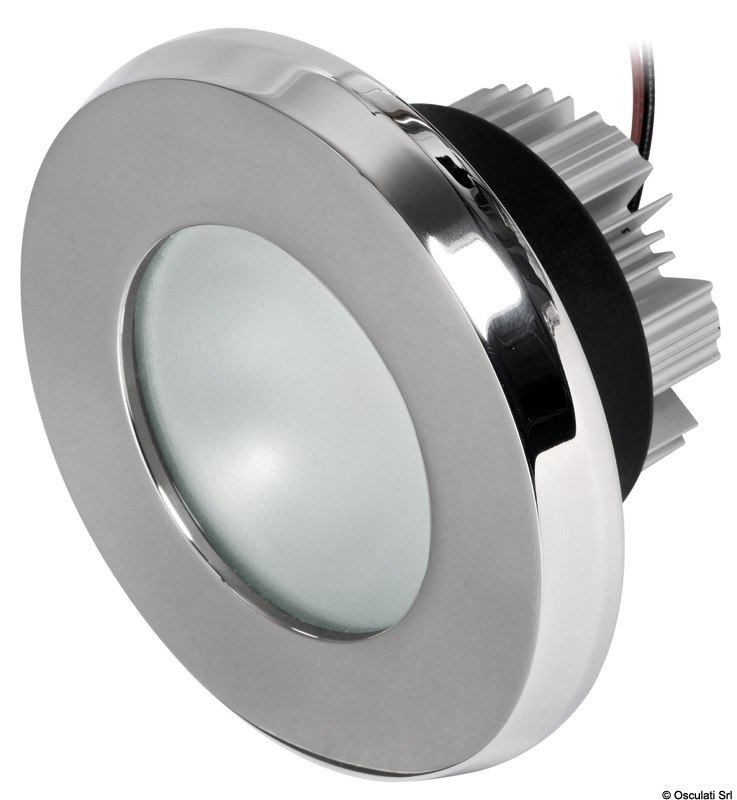 Corpo in PBT con dissipatore di calore in alluminio. Ghiera in acciaio inox microfuso. Emette una potente luce diffusa e naturale.