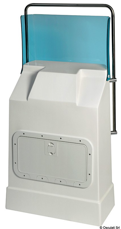 Fabbricata in vetroresina bianca, provvista di roll-bar in acciaio inox, parabrezza in plexiglass, gavone centrale apribile.