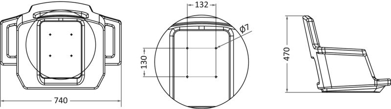 In polietilene bianco completa di cuscini smontabili in skay bianco. E’ particolarmente indicata per flybridge ove, pur rimanendo esposta alle intemperie, non subisce alcun deterioramento. Ha una forma estremamente confortevole. Sulla base é munita di inserti multipli in acciaio inox per essere accoppiata con qualsiasi piede girevole del nostro catalogo. Complete di 8 inserti filettati in ottone per fissaggio colonne e slitte.