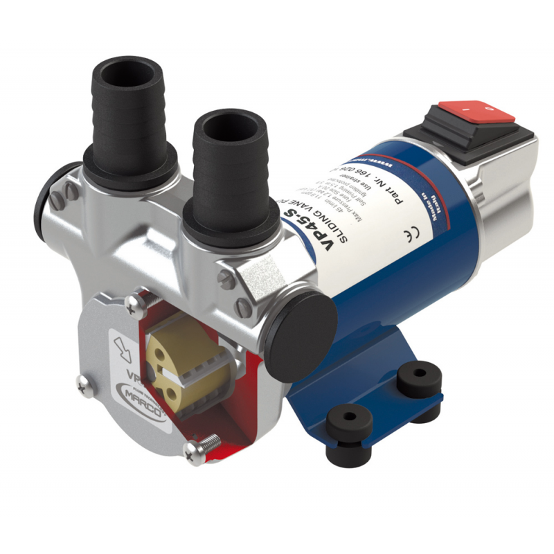 Pompa a palette autoadescante dotata di interruttore ON-OFF integrato, valvola by-pass, corpo inalluminio con doppia possibilità di connessione. Ideale per cicli di lavoro continuativi. Portata Lt./min. 45. Ø: USCITA 25 MM Alimentazione: 12 VOLT - 8 AMP Portata: 45 LT/MIN Autoadescamento: 1,5 MT Pressione: 1,2 BAR Rif. Originale: 166 028 12