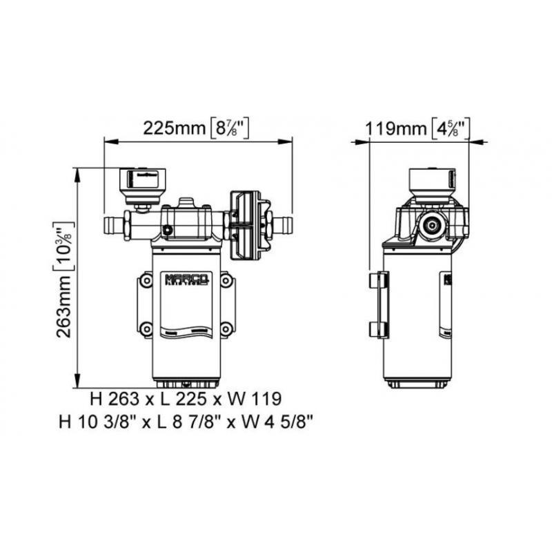 Elettropompa autoadescante ad ingranaggi in PEEK elicoidali, valvola di non ritorno e controllo elettronico. Corpo e connessioni in ottone nichelato, albero in acciaio inossidabile. Pannello di controllo incluso.Fusibile (non compreso) da 30A Portata: 46 LT/MIN Alimentazione: 12-24 VOLT - 18-9 AMP Autoadescamento: 3 MT Ø: USCITA 3/4X19 MM Pressione: 2,5 BAR Rif. Originale: 164 690 15