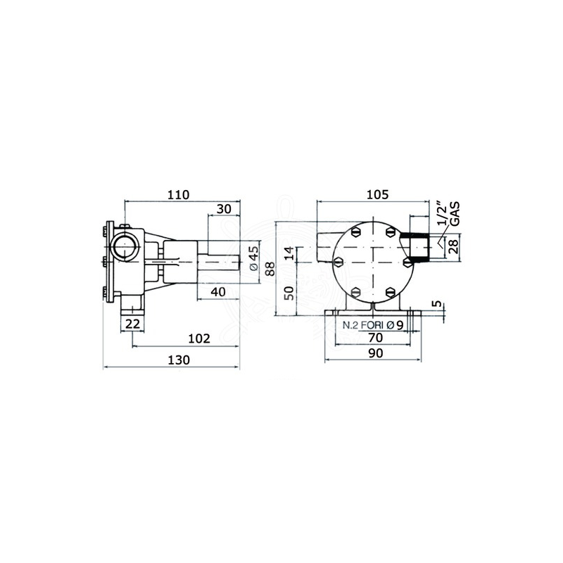 Pompe autoadescanti in bronzo, girante in neoprene, per raffreddamento motori, bocche da 1/2, portata It./min. 17,5/50. Girante di ricambio art. 2727162