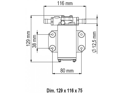 Pompa autoadescante, con ingranaggi in PEEK. Idonea per spruzzatura, trasferimento di acqua (max a 40°), gasolio (punto di infiammabilità 38°), antigelo. Portata: 10 LT/MIN Alimentazione: 12 VOLT - 3,2 AMP Autoadescamento: 1,5 MT Ø: USCITA 3/8X12 MM Pressione: 1,5 BAR Rif. Originale: 164 202 12