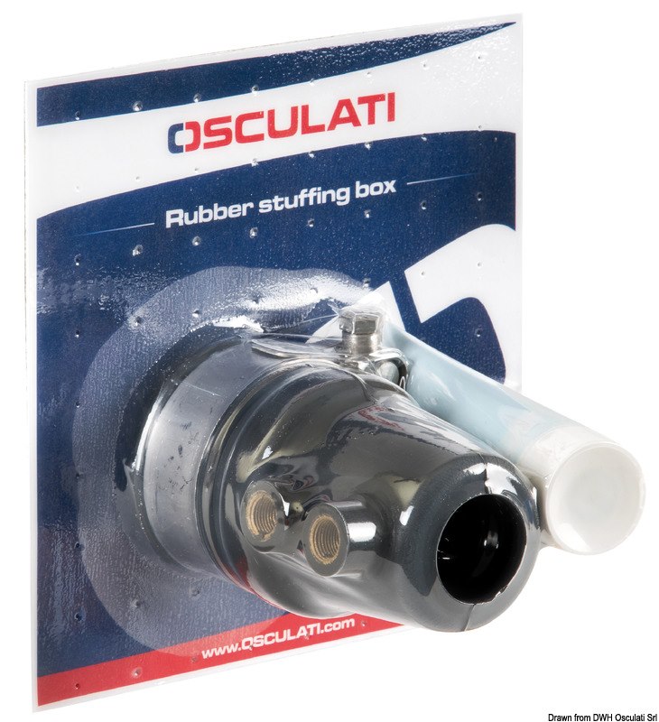 Garantisce un isolamento di lunga durata dalle infiltrazioni d’acqua, con bassa manutenzione se correttamente trattato. É realizzato in una speciale gomma resistente all’acqua salata ed al grasso lubrificante. Il prodotto è fornito completo di fascetta di serraggio in acciaio inox AISI 316 e di speciale lubrificante per linea d’asse. Il premistoppa lavora di regola sotto la linea di galleggiamento e viene lubrificato e raffreddato dall’acqua. Nel caso lavori sopra la linea di galleggiamento o al limite, è indispensabile il raffreddamento con una sorgente esterna di acqua. Versione A : con portagomma in ottone per lubrificazione esterna ad acqua (se non utilizzato è fornito tappo di chiusura in ottone) + foro con tappo in ottone per ingrassaggio. Versione B : priva di portagomma e foro di ingrassaggio. Il kit comprende: premistoppa + tubetto lubrificante specifico + istruzioni.