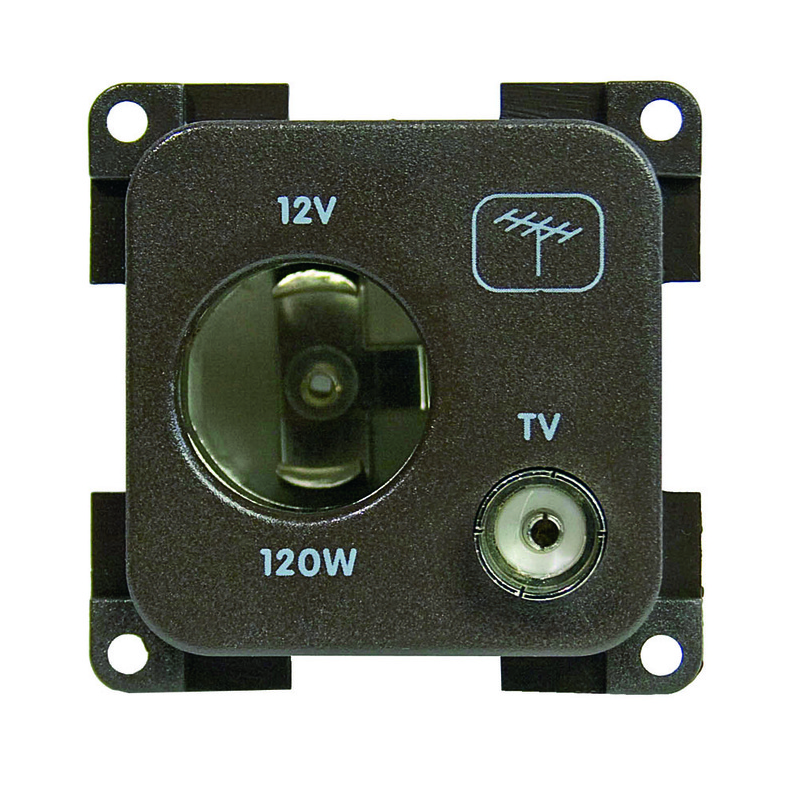 Presa tipo accendisigari12V e antenna Tv ( tv 9,5 75 ohm ). Equipaggiamento elettrico modulare in plastica grigia ral 7015