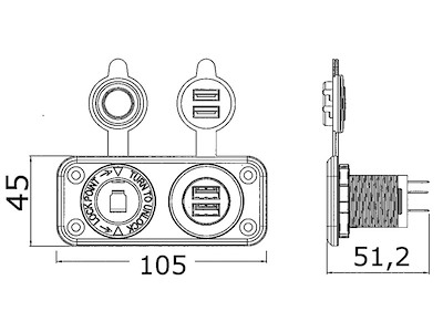 Fabbricate in nylon con cappuccio di protezione per renderle impermeabili. Ingresso 12/24 V. Uscita USB 5V.