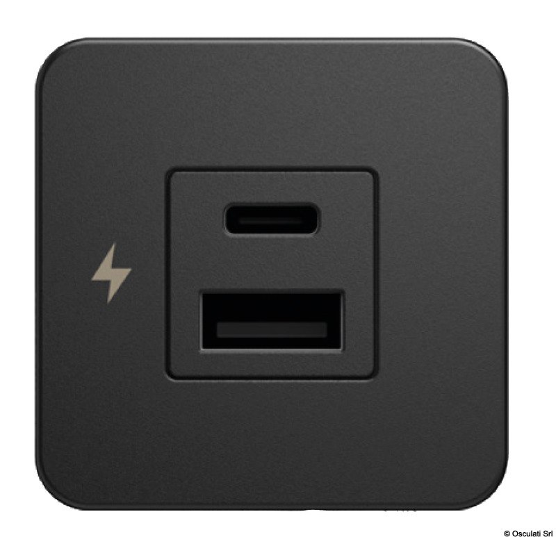 La presa USB doppia (A+C) Tile, offre soluzioni di ricarica eleganti e ad alte prestazioni, progettate specificamente per gli interni marini. Con eleganti opzioni di lunetta in nero opaco o acciaio inossidabile spazzolato 316 di alta qualità, questi caricabatterie si fondono perfettamente negli ambienti marini di lusso. Con un ingombro compatto di 40 mm, richiedono un seghetto a tazza di 29 mm per una facile installazione.