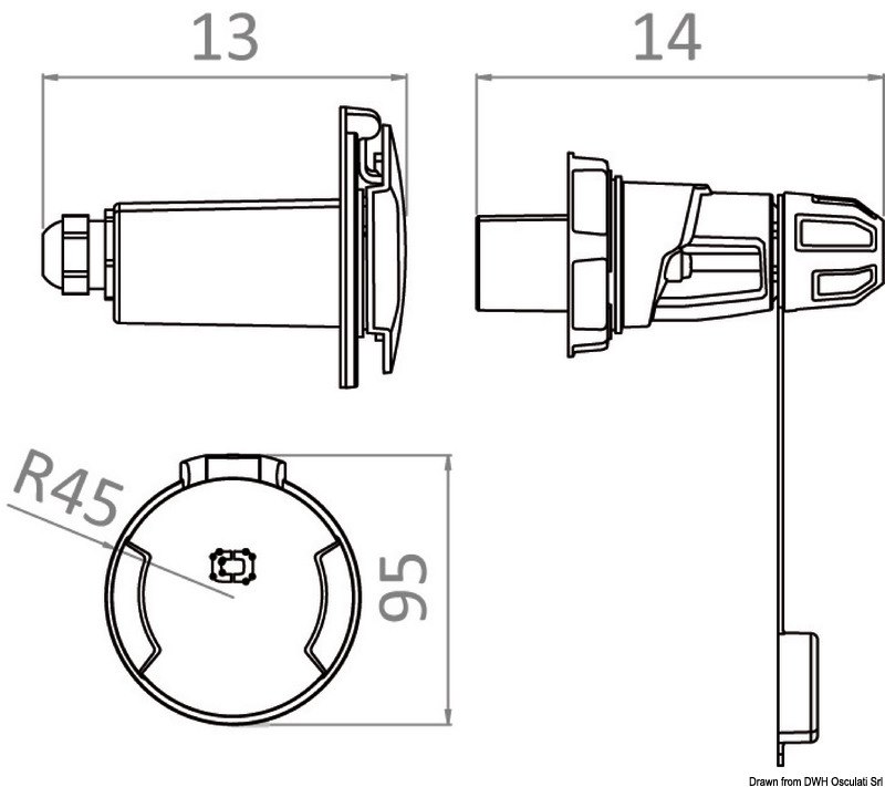 Il design pulito e le ridotte dimensioni permettono di poter installare comodamente la presa in qualsiasi punto del pozzetto.