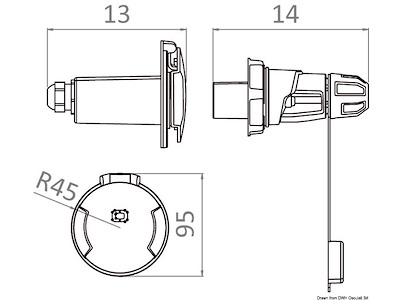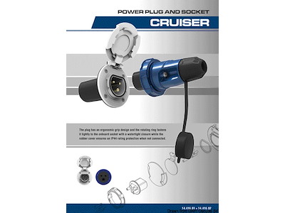 La spina è disegnata per garantire una impugnatura ergonomica e la ghiera rotante permette di assicurarla saldamente alla presa in barca con una chiusura stagna IP67, mentre il tappo in gomma garantisce una tenuta IP44 quando non è collegata.