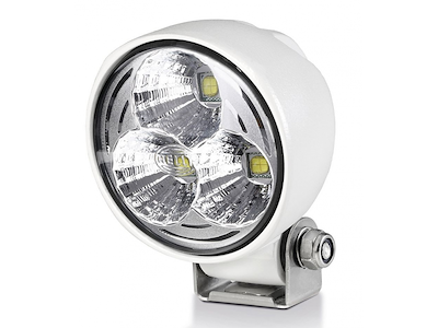 Proiettore da coperta e da lavoro compatto, potente e stagno IP6K9K. Corpo in Alluminio Anodizzato CoroSafe resistente UV e alla corrosione con componenti antivibrazione sigillati, staffa in acciaio inox, Lente in vetro resistente agli urti. Alimentazione multivolt 9-32V con 29W di consumo e luce bianca fredda 6500 K° 3500 lumen. Completo con 1 metro di cavo marino.