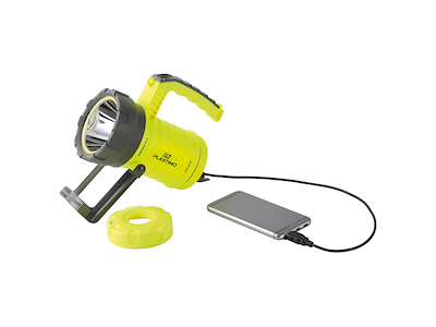 Proiettore portatile e galleggiante stagno IP67. Manico grande per una buona presa.Staffa girevole per appendere il faretto in base all'orientamento della luce richiesto.Cinghia per il trasporto inclusa. Modo flash attivabile premendo 2 sec. il pulsante di attivazione. Può essere adoperato come power bank per ricaricare Smartphone e i dispositivi USB compatibili. Connettore di Ricarica Micro Usb. 5 modalità di illuminazione: fascio potente / fascio potente e ampio / maxi / eco / flash. Fino a 1585 Lumen. Portata del fascio: da 13 a 905 m. Durata: da 2 a 26 ore.