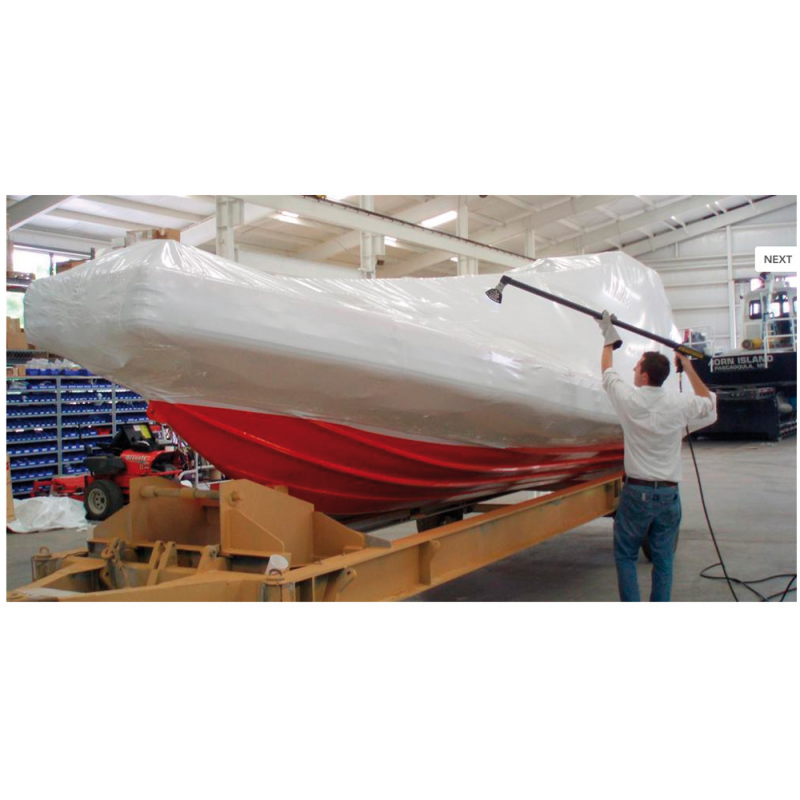Prolunga dotata di sistema di aggancio a pulsante per collegarsi e scollegarsi dalla pistola e di raccordo ad angolo di 75° per la compattazione del telo nelle parti più lontane e difficili da raggiungere