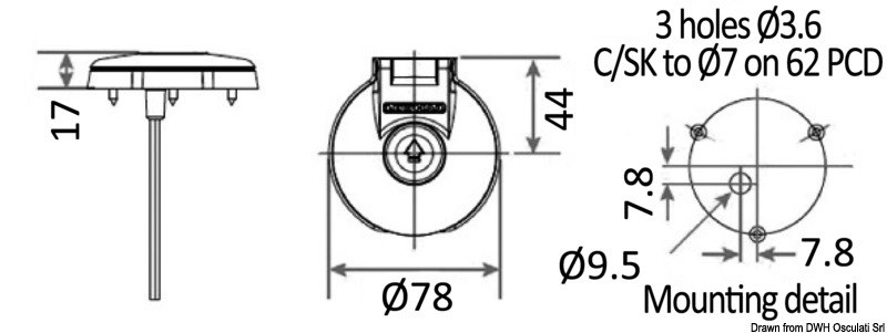 Realizzato in plastica rinforzata, completamente stagno e quindi adatto per il montaggio in coperta. Dotato di sportellino apribile; dimensioni particolarmente contenute.