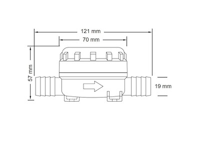 Pumpgard Prefiltro con 20 maglie per pollice quadrato (aperture di circa 0,8 mm) in linea con attacchi per tubo da 19 mm (3/4") ciascuno. Portata massima di 27 LPM (7 GPM). Pressione massima 5 bar (70 PSI). Dimensioni: lunghezza circa 121 mm / larghezza circa 70 mm / altezza circa 57 mm(ex codice FNI 1616701)