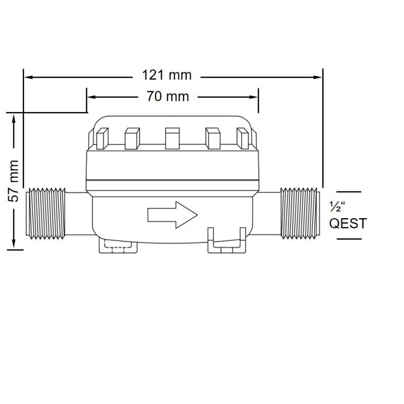 Pumpgard Prefiltro con 40 maglie per pollice quadrato (aperture di circa 0,4 mm) in linea con attacchi per tubo da 1/2" filettato ciascuno. Portata massima di 23 LPM (6 GPM). Pressione massima 5 bar (70 PSI). Dimensioni: lunghezza circa 121 mm / larghezza circa 70 mm / altezza circa 57 mm