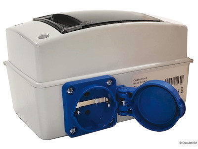 Box in ABS bianco compatto con sportello impermeabile IP65, dotato di salvavita, magnetotermico e cavo 3G di lunghezza 3 metri.