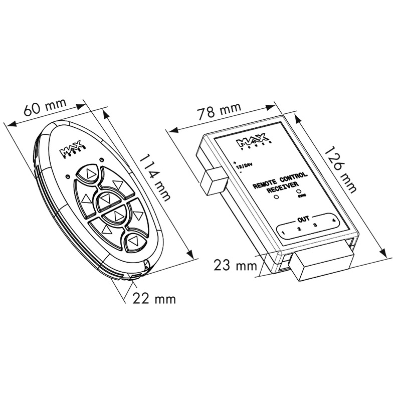 Il radiocomando Max Power è stato progettato per funzionare con l’intera gamma di eliche a tunnel e retrattili Max Power, ma naturalmente può essere utilizzato per controllare qualsiasi altra funzione di bordo come ad esempio: salpa ancora, passerelle, gruette ecc. Ogni trasmettitore è in grado di gestire 2 ricevitori che possono essere installati in posizioni diverse, ciascun ricevitore ha 4 contatti puliti che sopportano fino a 24V e 5A.Caratteristiche principali:- Controlla fino a 8 canali indipendenti.- Ogni ricevitore ha 4 canali (12/24V, 5A).- Ogni trasmettitore può gestire 2 ricevitori (8 canali).- Il riconoscimento digitale evita azionamenti accidentali da altri sistemi.- Frequenza 868 Mhz (conformità EU).- Alimentazione trasmettitore: 2 batterie al litio 3V (CR2430) incluse.- Alimentazione ricevitore: 12/24V DC.- Nessun consumo del trasmettitore quando è in stand-by.- Stagno IP67.