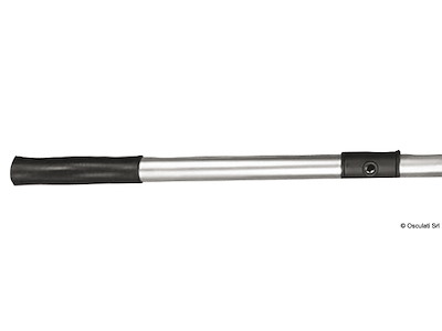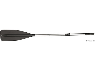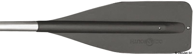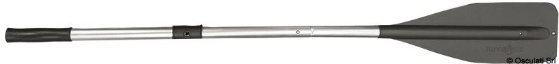 Coppia di remi in alluminio anodizzato Ø35 mm con pala in polipropilene resistente ai raggi UV. Sistema di giunzione delle 2 parti a scatto. Accoppiabili con scalmi standard maschio 66.080.16. Venduti in coppia.