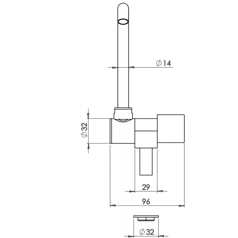 Rubinetto in ottone cromato, con canna alta abbattibile, acqua fredda. Attacco maschio 3/8"