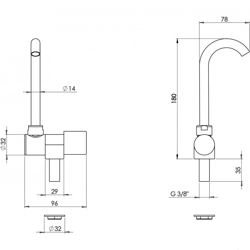 Rubinetto in ottone cromato, con canna bassa abbattibile, acqua fredda. Attacco maschio 3/8".