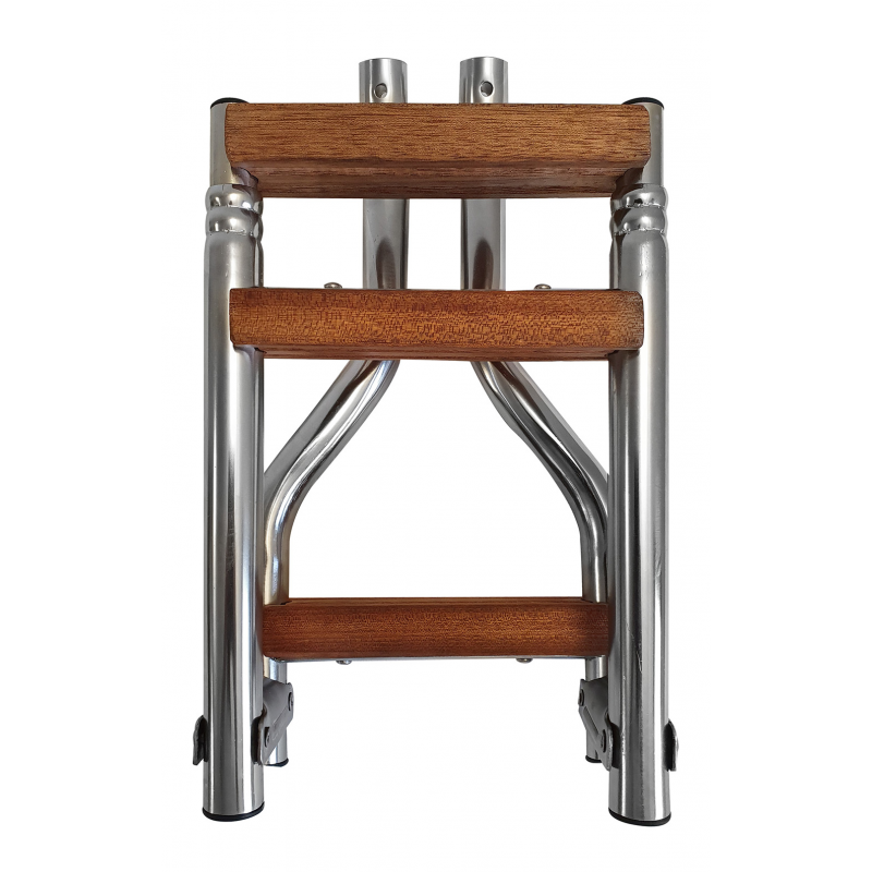 Scalettain acciaio inox Ø mm 25 pieghevole, gradini in legno marino.Per plancette articolo 3030422/31/38/39. Lunghezza mm. 600. Larghezza mm. 200.
