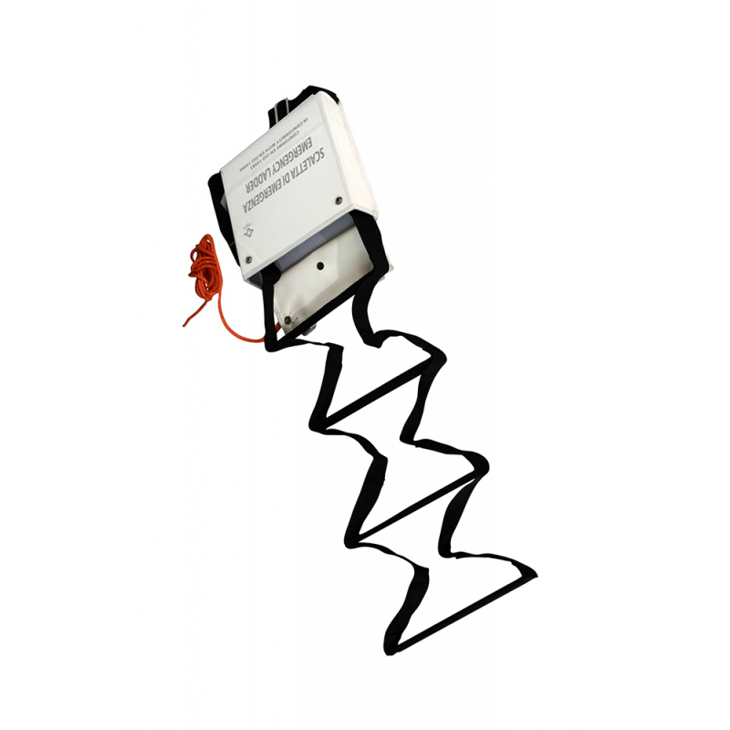 Scaletta biscaglina di emergenza nastro in poliestere nero e gradini in fibra di vetro. Fornita con contenitore, si fissa al pulpito. Il funzionamento è semplice e sicuro, tramite la cima permette alla persona caduta in mare di liberare la scaletta e risalire a bordo.