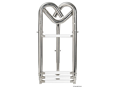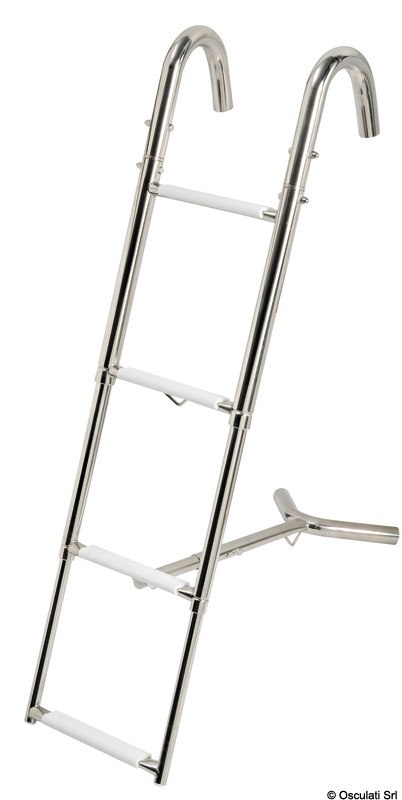 Realizzata in acciaio inox AISI 316 lucidato a specchio. I bracci sono girevoli e si agganciano al pulpito. Caratteristiche tecniche: scaletta telescopica con gradini ovali rivestiti in plastica bianca; bracci di aggancio girevoli; puntone di appoggio alla prua telescopico.
