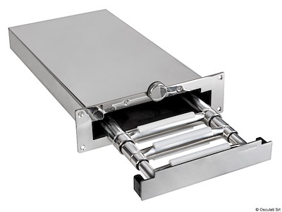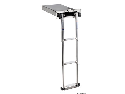 Scaletta telescopica ad incasso compatta da 3 gradini + box da incorporare nello spessore della plancetta. Le sue dimensioni ridotte la rendono ideale per le imbarcazioni più piccole.