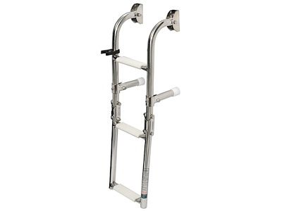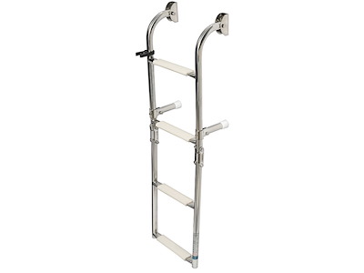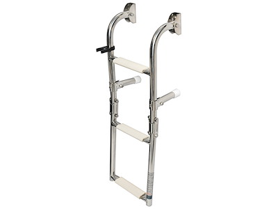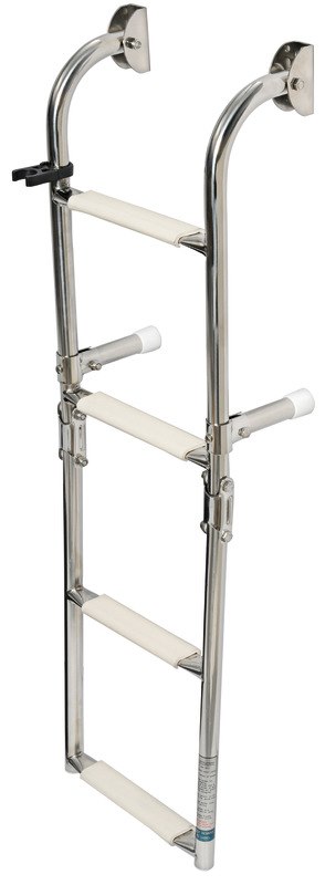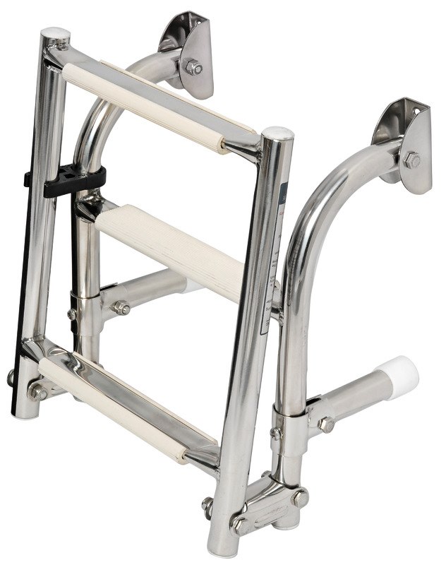 In acciaio inox lucidato a specchio per il fissaggio su poppa, modello con gradini con superficie ovalizzata. Il gradino ovale, rispetto ai tradizionali tondi, é molto più agevole e comodo nell’uso. I gradini nella parte superiore sono ricoperti di pedana in plastica antiscivolo.