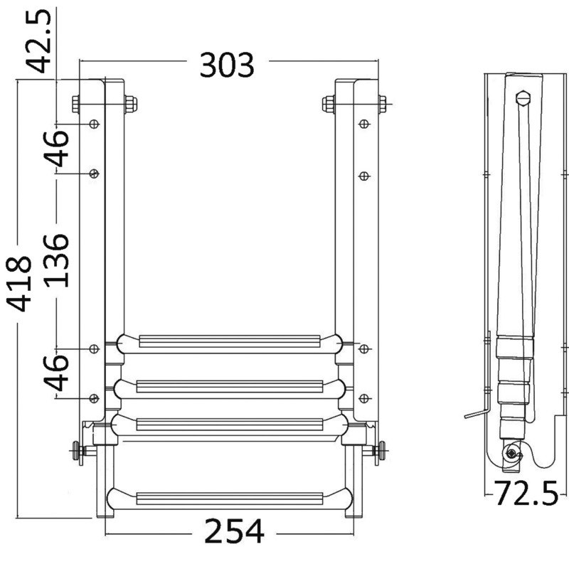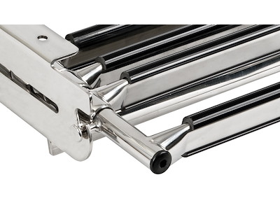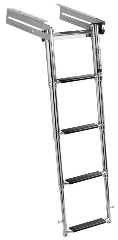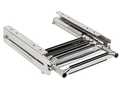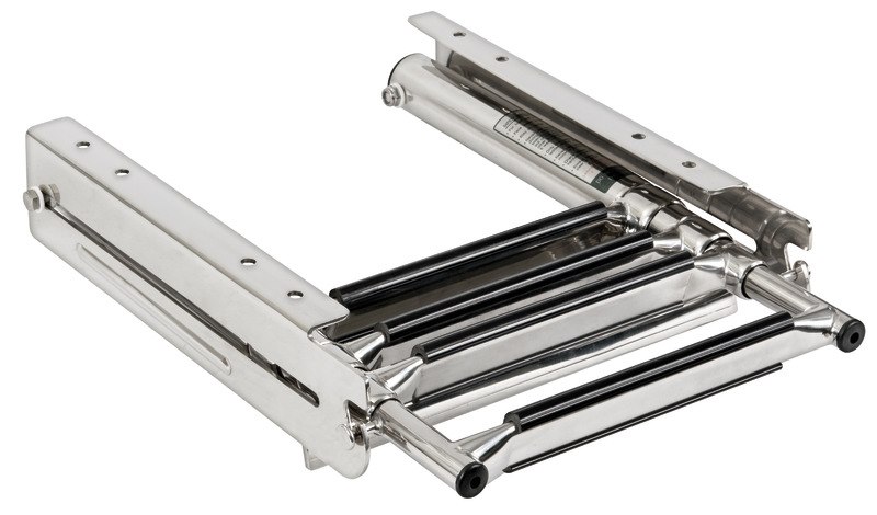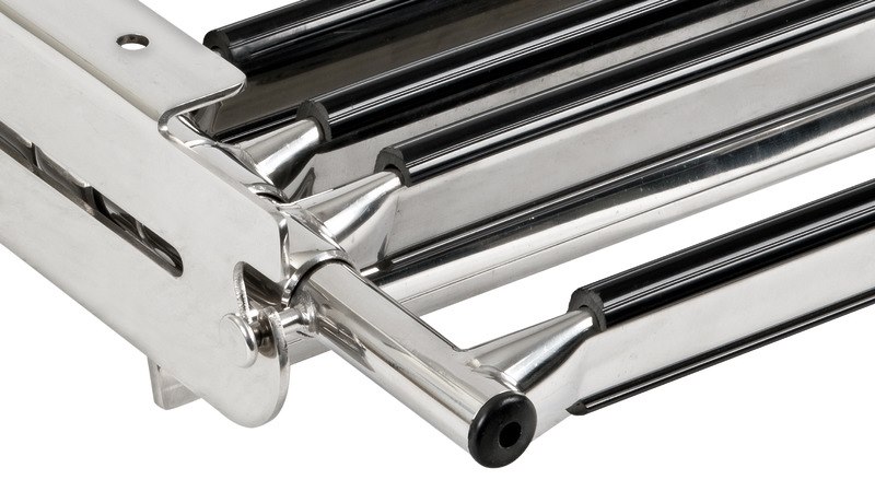 Scaletta a scomparsa con 4 gradini rettangolari in plastica nera.Realizzata interamente in acciaio inox.